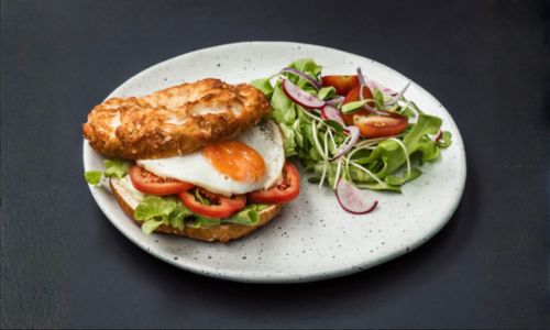 Grilled or fried chicken breast, romaine lettuce, cherry tomatoes, Kalamata olives, croutons, soft boiled egg served with Caesar dressing