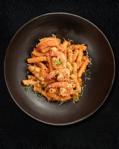 Tomato sauce, cream, cajun spices, shimp, parmesan cheese
