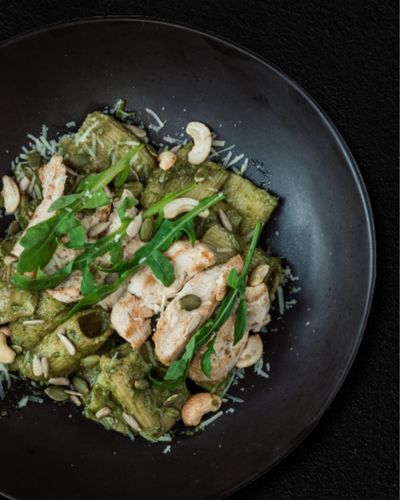 Creamy Grilled Chicken Pesto Pasta